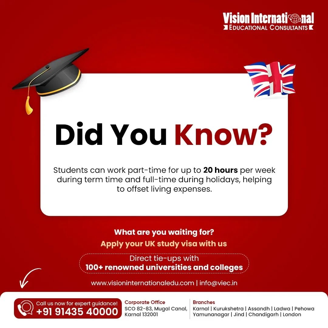 Vision International Educational Consultants – your trusted study visa and educational consultancy in Haryana. With branches in Karnal, Kurukshetra, Assandh, Ladwa, Pehowa, YNR, Jind, Chandigarh, UAE and London. As a certified British Council Education Consultancy, we offer personalized assistance in visa applications and choosing the right institution. Connect with us and unlock a world of educational opportunities. Call/WhatsApp: 9143540000